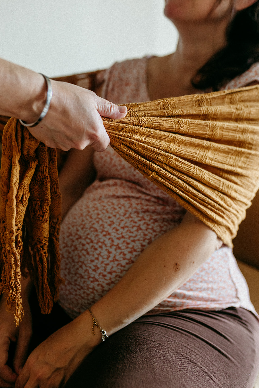 La synergie du tissu rebozo avec le massage ayurvédique vous permettra de vous bercer, de vous porter, de vous soulager, de vous réconforter pour vous ouvrir physiquement et psychiquement à l’enfantement.